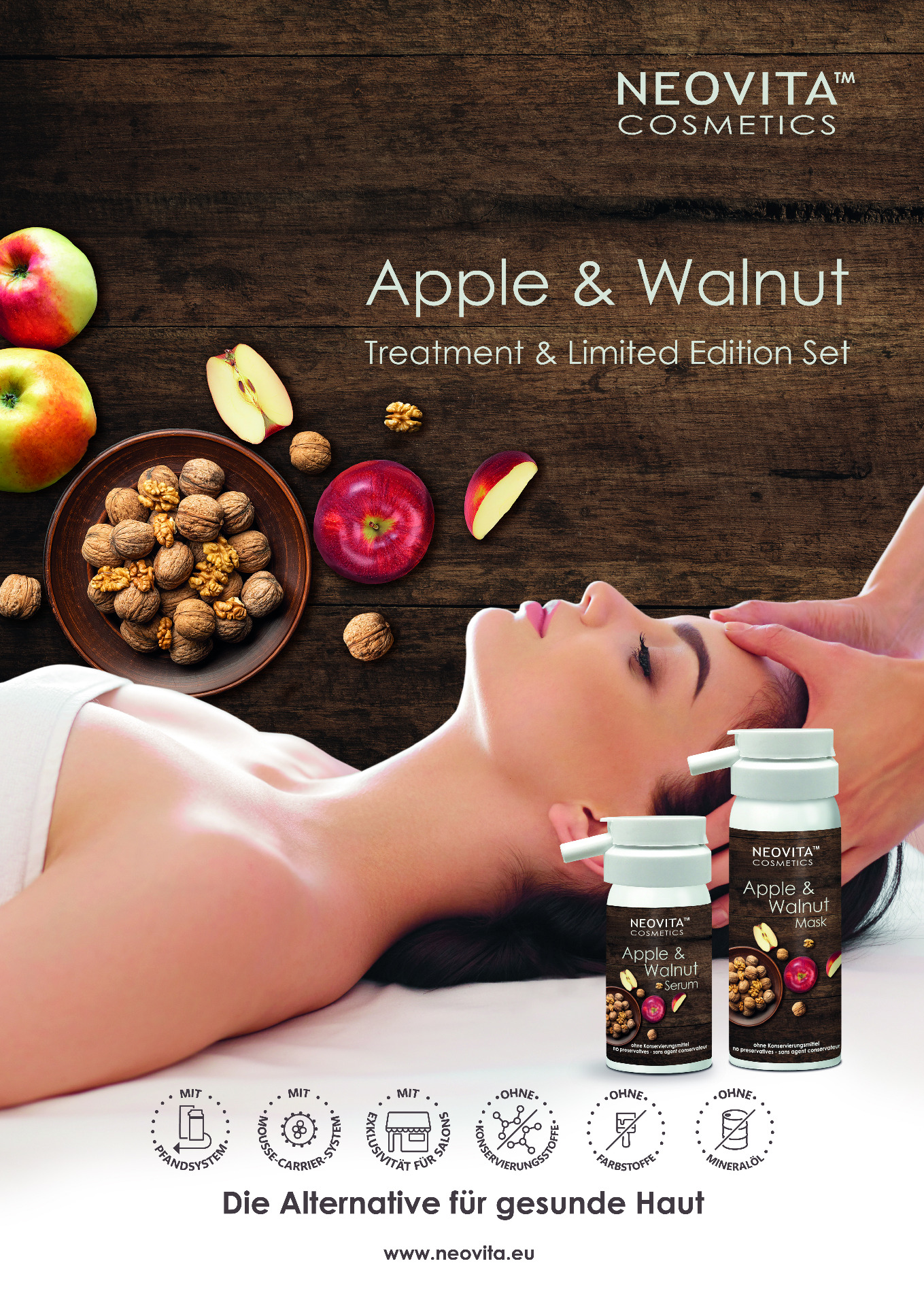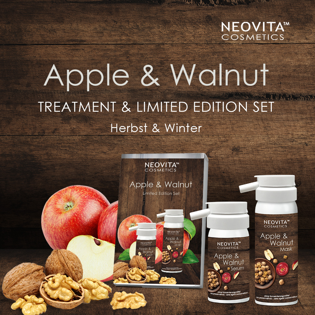 Mit unserer Saisonbehandlung Apple & Walnut schenken wir unseren Kunden zwei natürliche Schönmacher für die Haut. Apfel und Walnuss, die perfekte Kombination für einen winterlichen Power Cocktail für die Haut und eine sinnliche Verwöhnung in der Kabine.