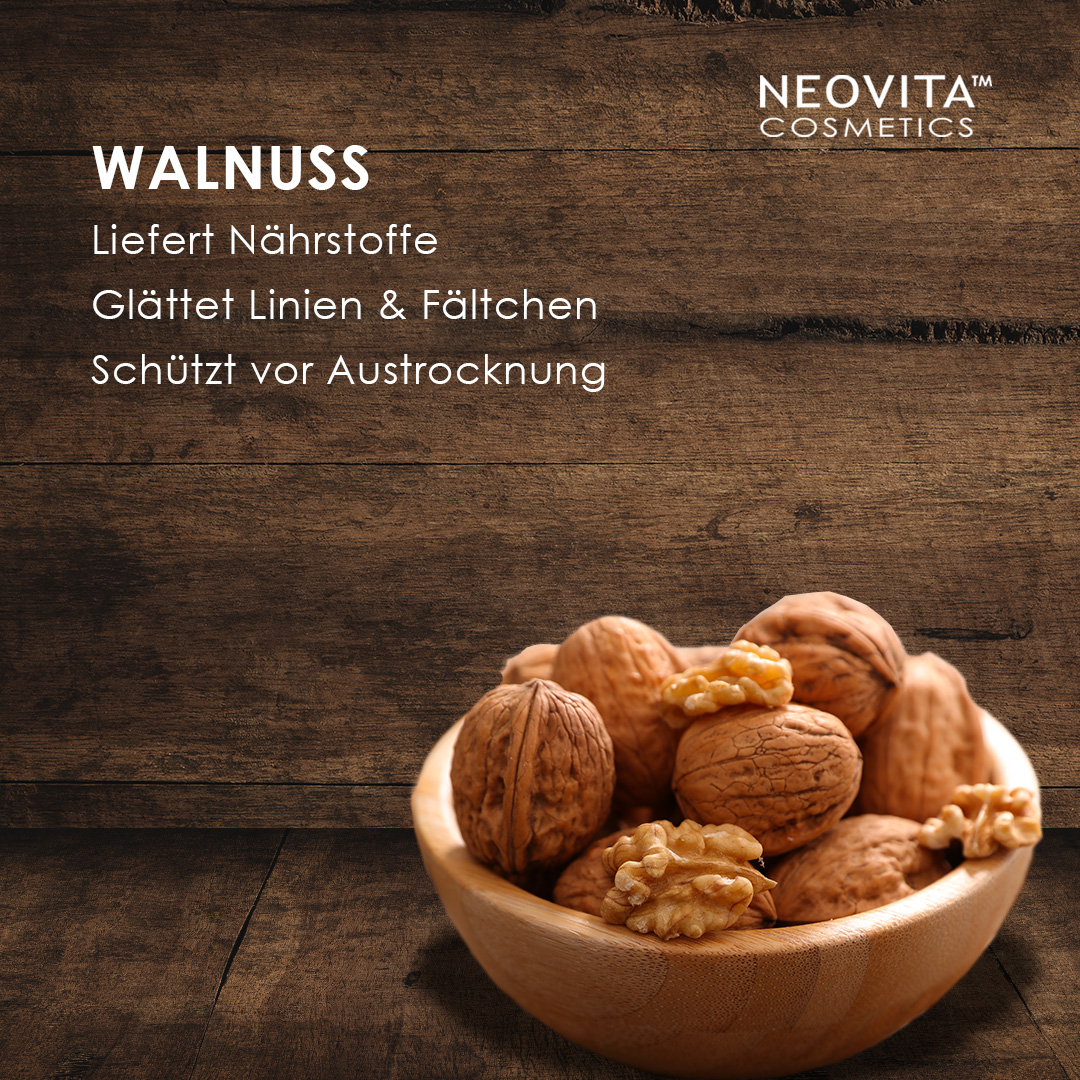 der Hautalterung, wie Linien und Fältchen, zu reduzieren. Weiterhin enthält Walnussöl Linolsäure, die die